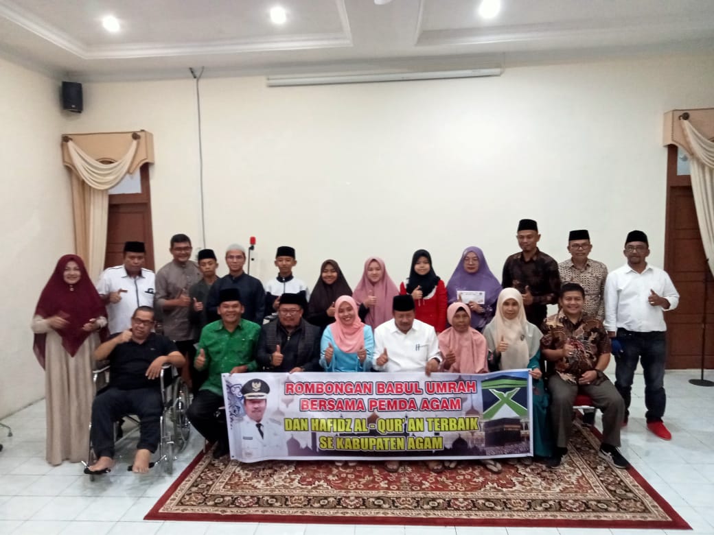 Marawapost.com, Agam – Bupati Agam, Dr H Andri Warman MM lepas keberangkatan para pemenang lomba Musabaqah Hifzil Qur’an (MHQ) pertama tingkat Kabupaten Agam untuk pergi umroh ke tanah suci, di Mess Pemkab Agam, Belakang Balok, Bukittinggi, Rabu (22/02/23).