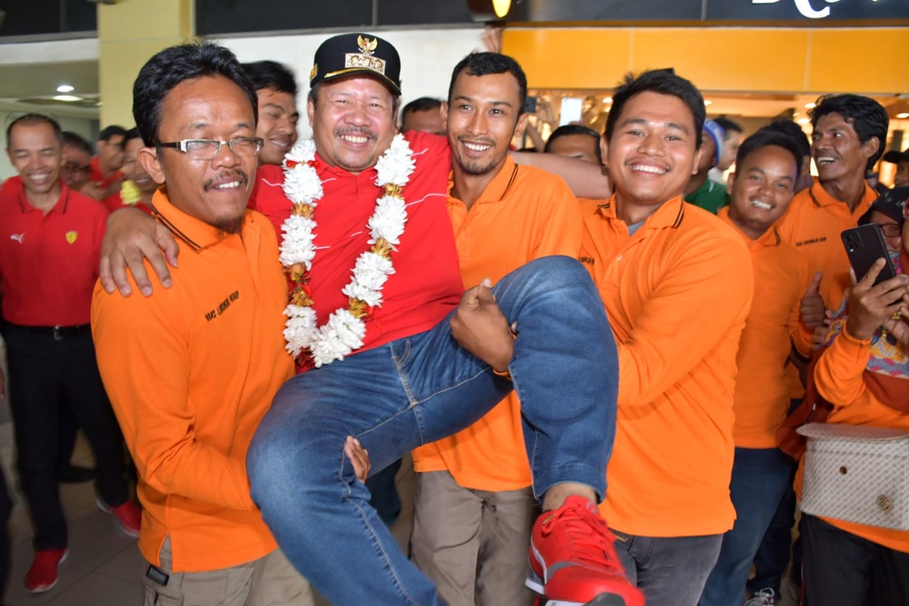 Wujud rasa bangga dengan karya mereka yang membuahkan hasil, pasukan orange secara spontan menggendong bupati Andri Warman setiba di BIM. Pasukan orange begitu gembiranya menyambut kedatangan bupati yang akrab disapa AWR itu sembari membawa piala Adipura.