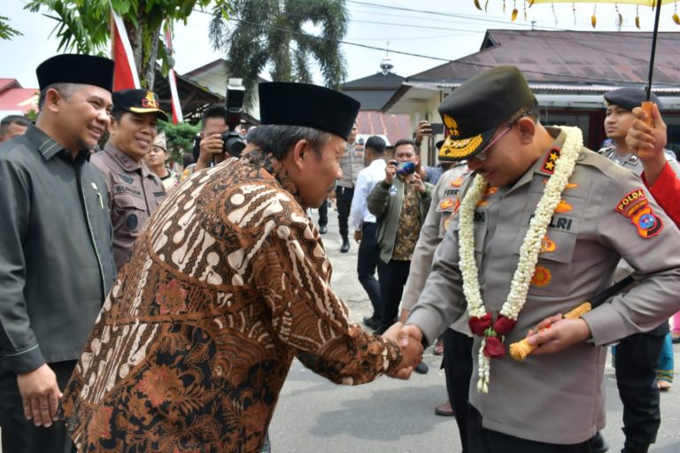 “Selamat datang di Kabupaten Agam pak Irjen Pol Suharyono,” ucap Andri Warman sembari menyalami Kapolda Sumbar itu.