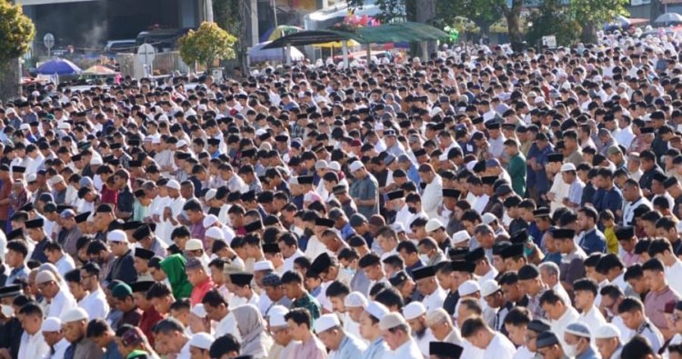 Marawapost.com, Bukittinggi – Pemerintah Kota Bukittinggi gelar Shalat Idul Fitri 1444 H di Lapangan Kantin, Sabtu (22/04/23). Shalat Ied langsung diikuti oleh Wali Kota Bukittinggi, H. Erman Safar, SH, Wakil Wali Kota Bukittinggi, Marfendi, Forkopimda, pimpinan dan anggota DPRD, kepala SKPD ribuan umat muslim di kota Bukittinggi.