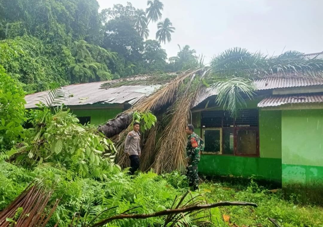 Marawapost.com, Padang Pariaman – Cuaca ekstrem yang terjadi beberapa hari ini sangat menghawatirkan kita semua, kenapa tidak. Baru saja kemarin terjadi banjir di bantaran Daerah Aliran Sungai (DAS) Batang Gasan, yang berlokasi di Kampuang Tarandam Korong Piliang Nagari Gasan Gadang, kemudian tanah longsor di Surau Jati Korong Tanjuang Nagari Gasan Gadang, lalu tanah longsor di Korong Padang Jajaran Nagari Malai V Suku, yang menyebabkan terhambatnya transportasi masyarakat dari Nagari Malai V Suku menuju Nagari Malai V Suku Timur, yang mana jalan ini juga sebagai jalan utama penghubung Dua Kecamatan, yakni Kecamatan Batang Gasan dengan Kecamatan Sungai Garinggiang Kabupaten Padang Pariaman. Kini ditambah lagi dengan Batang Pohon Sawit tumbang dan langsung menimpa SD Negeri 10 Batang Gasan Kecamatan Batang Gasan. Lokasi di Korong Piliang, Nagari Gasan Gadang Kecamatan Batang Gasan, Senin (08/05/23).