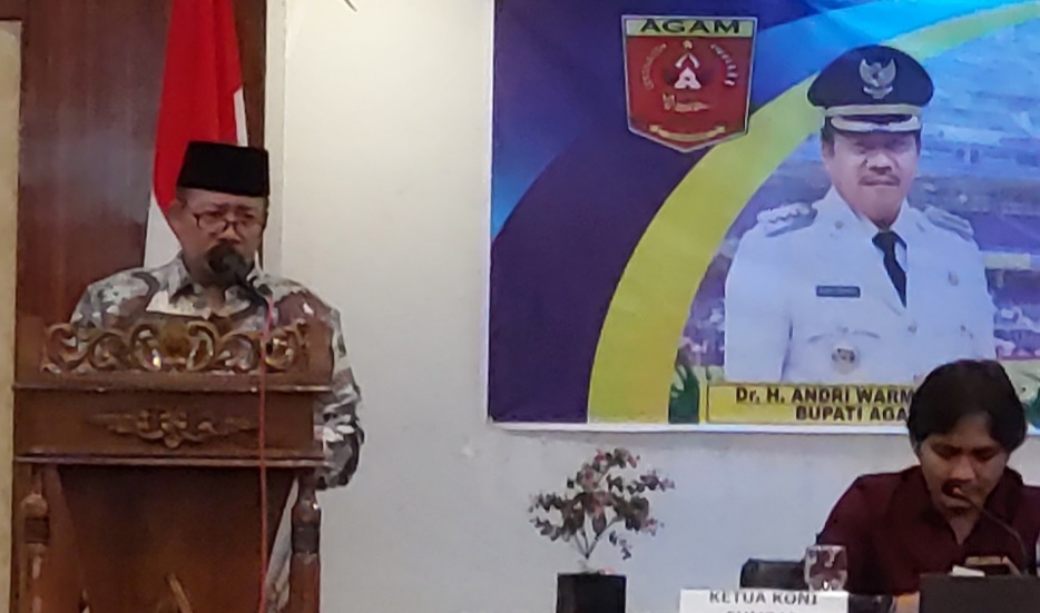 Marawapost.com, Agam – Bupati Agam, Dr H Andri Warman, MM membuka Rapat Kerja (Raker) Komite Olahraga Nasional Indonesia (KONI) Kabupaten Agam, Kamis (8/6) di Hotel Sakura Syariah Lubuk Basung.