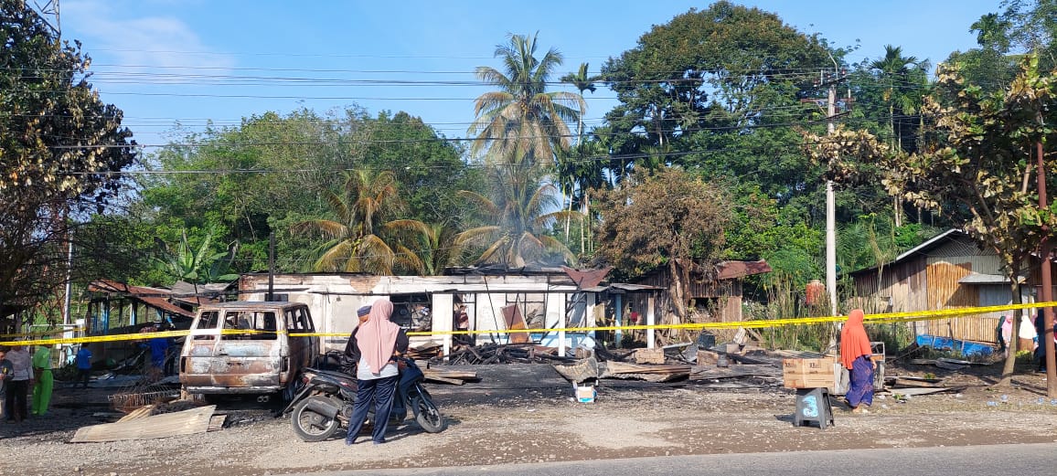 Karena api cukup membasar sekali,sehingganya sebagaian barang barang tidak bisa di selamatkan termasuk satu unit mini bus roda empat yang ikut terbakar,untung saja dalam peristiwa kebakaran ini kelurga kami tidak ada menjadi korban dengan nada sedih ucap Risman