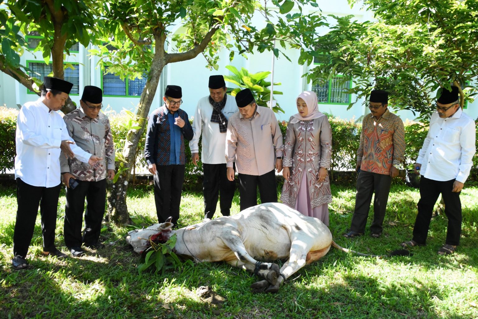 Proses penyembelihan hewan kurban ini, selain disaksikan Bupati Agam dan keluarga, juga dihadiri Sekda Agam, Drs Edi Busti MSi, Asisten II Setda Agam, Jetson, kepala OPD dan lainnya.
