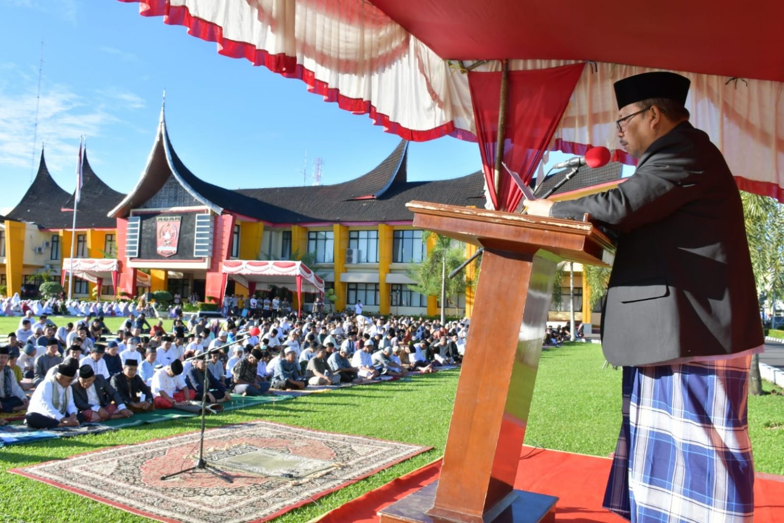 “Kita terus menggelorakan semangat berkurban ini di tengah masyarakat,” ujar Bupati Agam, Dr H Andri Warman dalam pidatonya saat ikuti shalat Idul Adha 1444 H, di halaman Kantor Bupati Agam, Kamis (29/06/23).