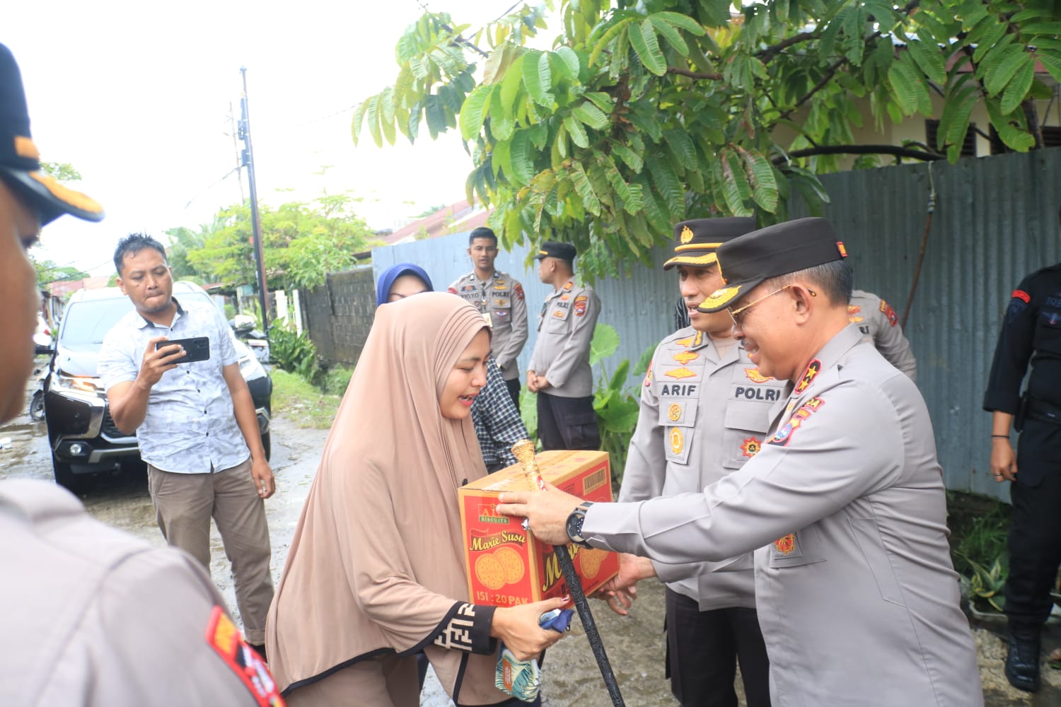 Disana, Irjen Pol Suharyono menyemangati kepada warga Aspol Alai dan memberikan sejumlah bantuan makanan seperti roti dan mie instan. (*)