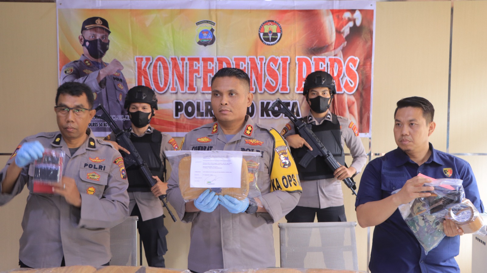 Kapolres 50 Kota AKBP Ricardo Condrat Yusuf, S.H., S.I.K., M.H didampingi Kasat Resnarkoba Iptu Andhika, Kamis (07/09) menerangkan kronologis penangkapan tersangka inisial G, warga Jorong Boncah Nagari Simpang Sugiran Kabupaten Lima Puluh Kota.