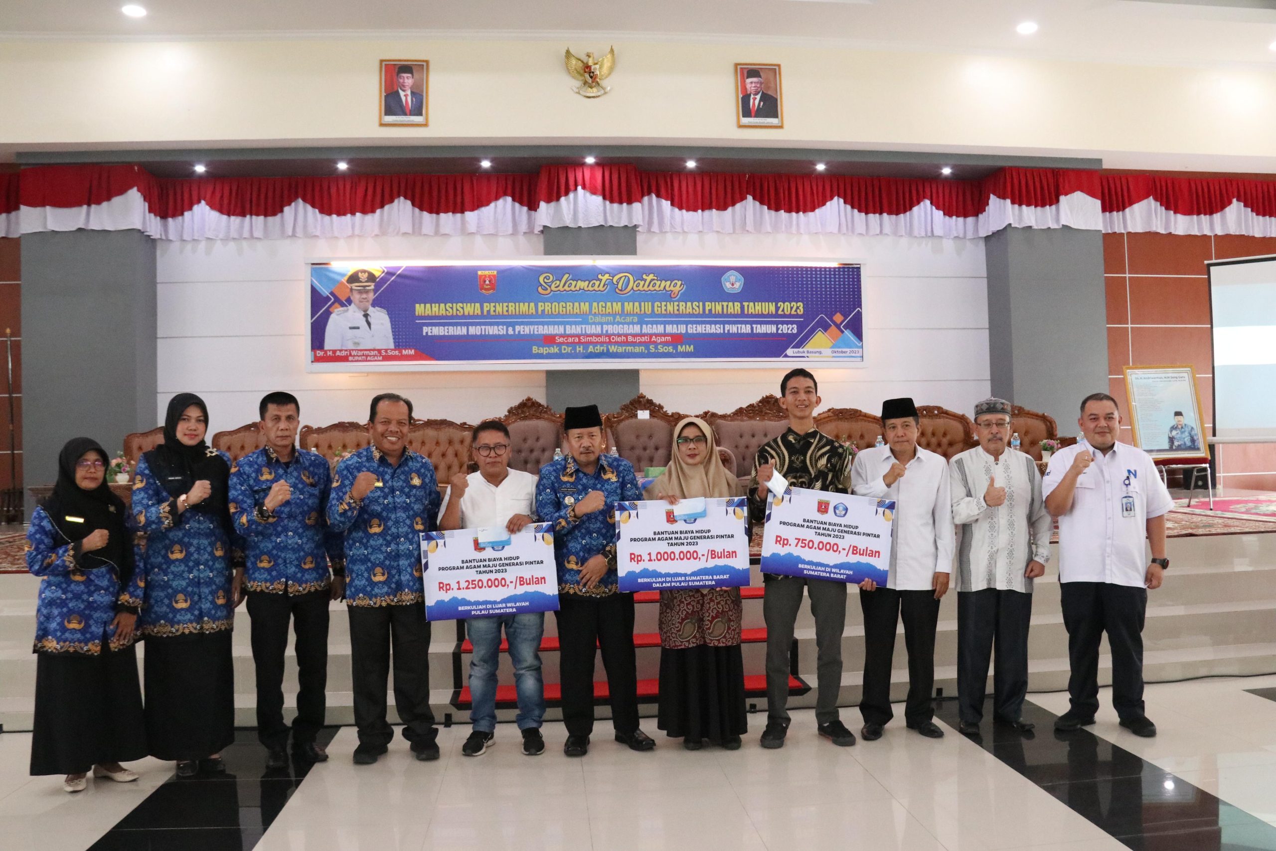 Bupati Agam, Dr H Andri Warman MM dalam sambutannya mengatakan program “Agam Maju Generasi Pintar” sudah memasuki tahun ketiga dan tahun ini Pemkab Agam telah melakukan survey kepada 700 mahasiswa calon penerima bantuan biaya hidup tersebut.
