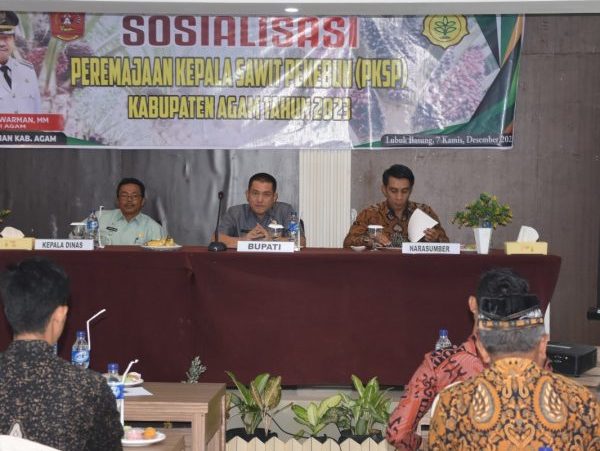 Marawapost.com, Agam – Dinas Pertanian Kabupaten Agam gelar sosialisasi Peremajaan Kelapa Sawit Pekebun (PKSP) Agam, di Hotel Sakura Syariah, Lubuk Basung, Kamis, (07/12/23).