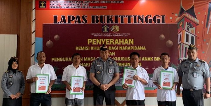 “Sebanyak 4 Warga Binaan Pemasyarakatan (WBP) itu menerima remisi/pengurangan masa pidana khusus Hari Natal selama 15 hari hingga dua bulan, ” kata Kalapas Bukittinggi, Herdianto.