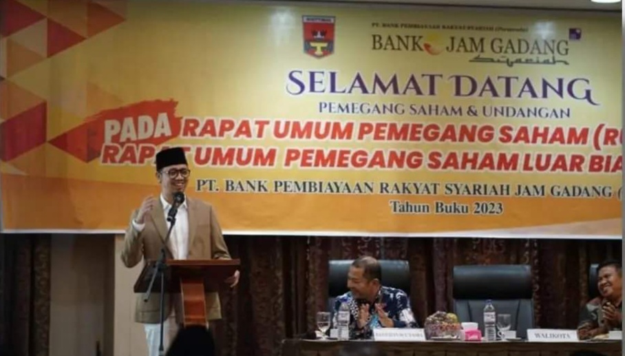 Marawapost.com, Bukittinggi – PT. Bank Pembiayaan Rakyat Syariah (BPRS) Jam Gadang gelar Rapat Umum Pemegang Saham (RUPS) tahun 2023. RUPS dipimpin langsung Wali Kota Bukittinggi dan dihadiri para pemegang saham, di Hotel Rocky, Kamis, 18 Januari 2024.