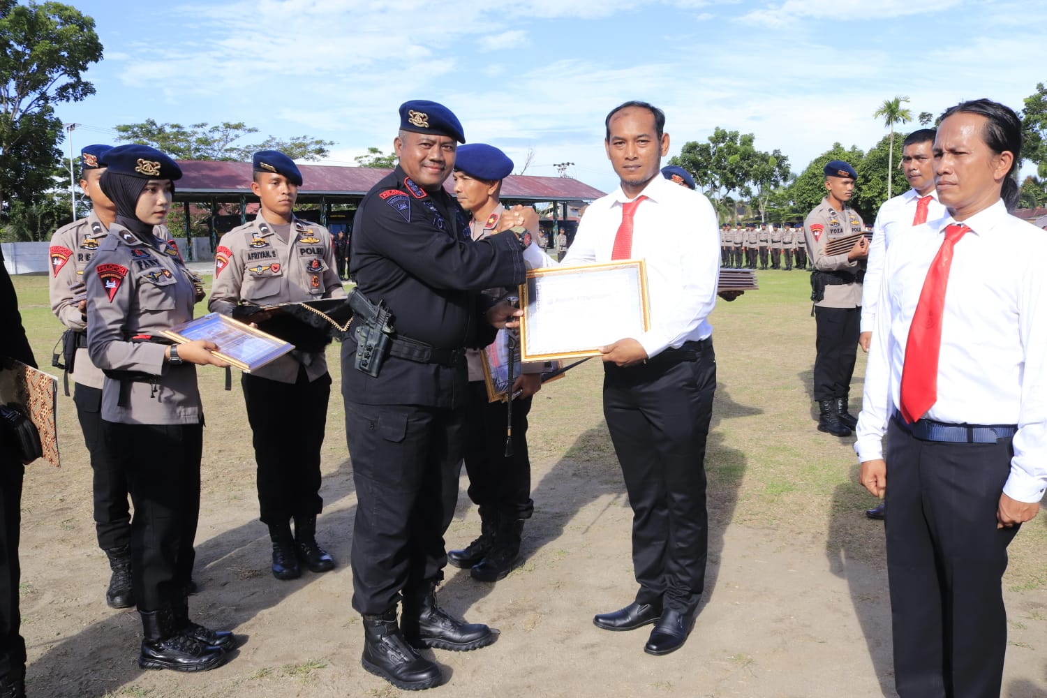 Upacara penyerahan piagam penghargaan ini di dampingi juga oleh Kapolresta Padang dan Perwira Satuan Brimob Polda Sumbar.(*)