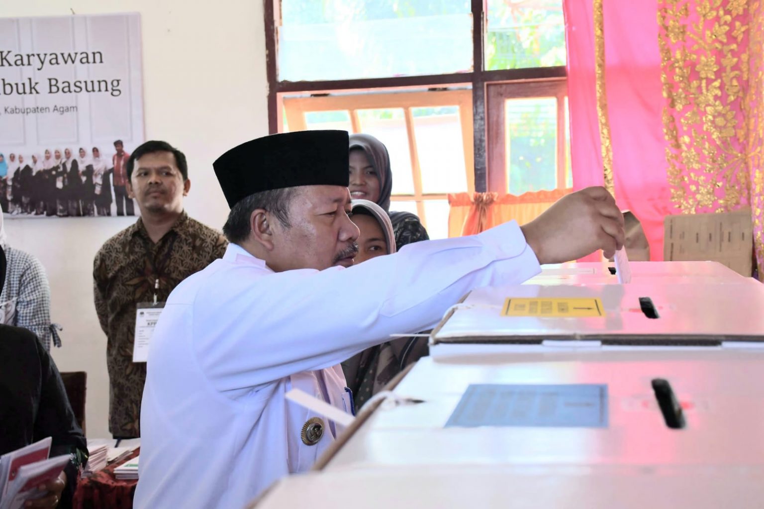 Selain bupati, Sekdakab Agam, Edi Busti dan forkopimda juga menggunakan hak pilihnya di TPS yang sama.