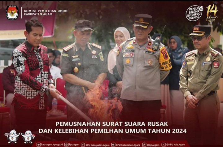 Pemusnahan surat suara itu dilakukan dengan cara dibakar, yang dihadiri Bawaslu Agam dan Forkopimda.