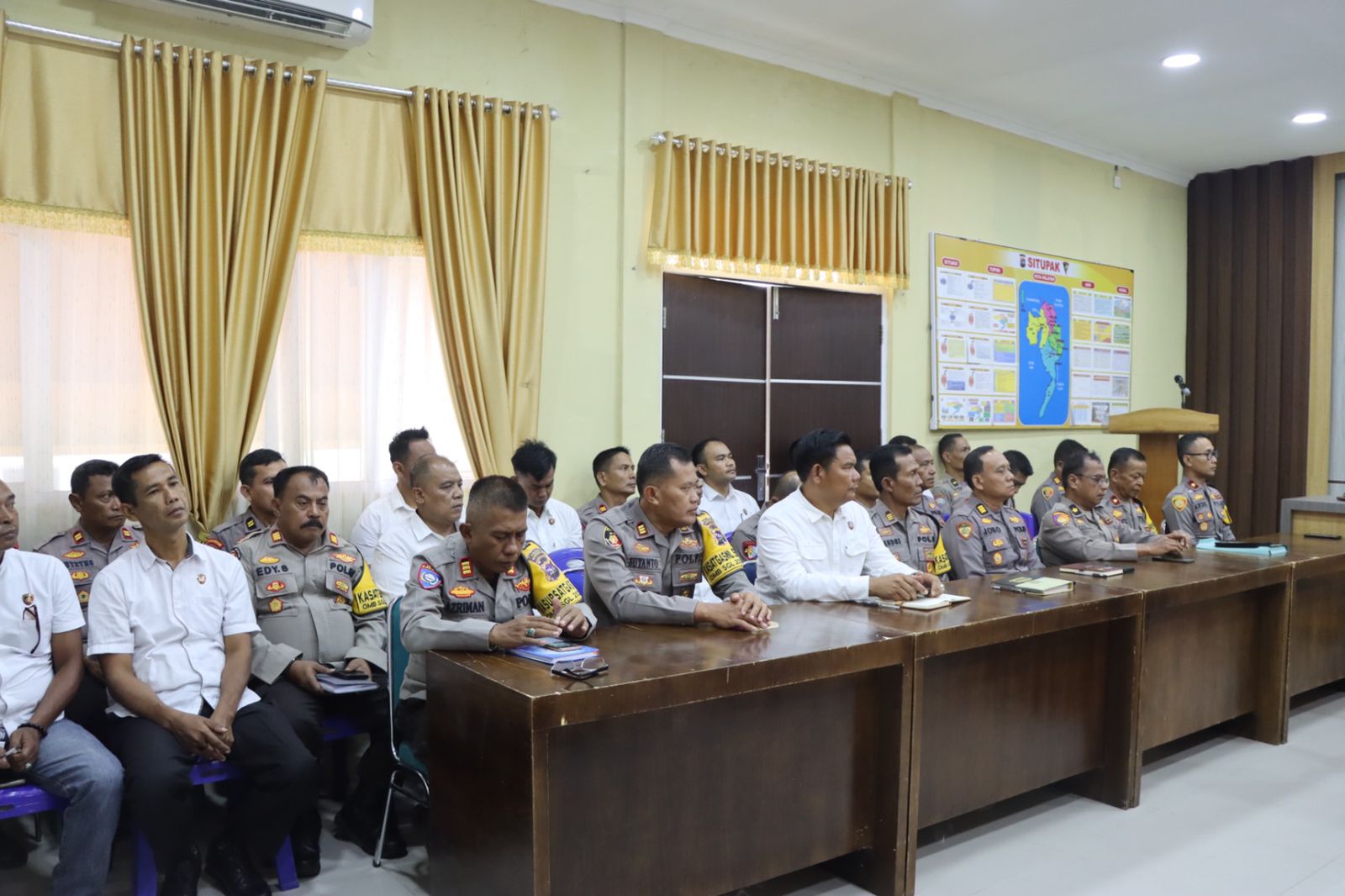 Marawapost.com, Dharmasraya – Kapolres Dharmasraya, AKBP Bagus Ikhwan, SIK.MH, didampingi Wakapolres Kompol Andri Nugroho Saputro, SE. SIK. MM, beserta sejumlah pejabat utama dan personel Polres Dharmasraya, mengikuti proses audit kinerja tahap 1 Tahun Anggaran 2024 terkait perencanaan dan organisasi di Polres Dharmasraya. Tim audit dipimpin oleh Irwasda Polda Sumbar Brigjen Pol Arif Rahman Hakim dan beranggotakan empat personel.