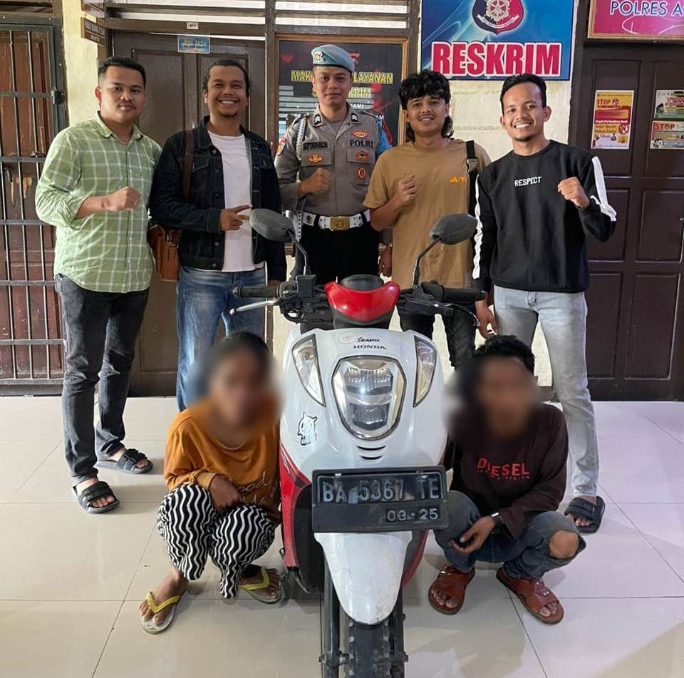 Dari kedua pelaku tersebut, petugas juga berhasil mengamankan satu unit kendaraan bermotor roda 2 Merk Honda Genio Warna Putih Kombinasi Merah dengan Nopol BA 5367 TE hasil kejahatan sebagai barang bukti.