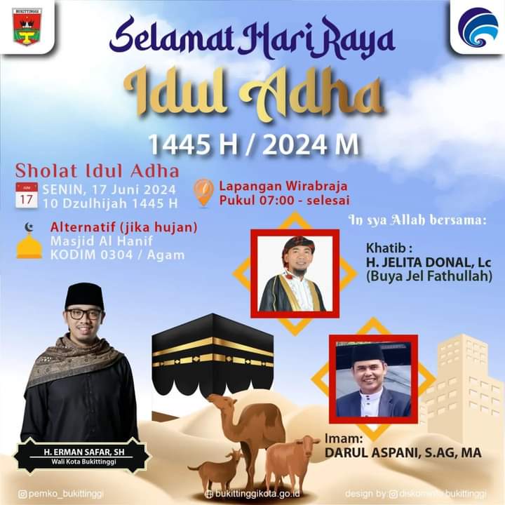 Marawapost.com, Bukittinggi – Pemerintah Kota Bukittinggi direncanakan akan melaksanakan Shalat Idul Adha 1445 H/2024 M, di Lapangan Wirabraja Bukittinggi, Senin, 17 Juni 2024.
