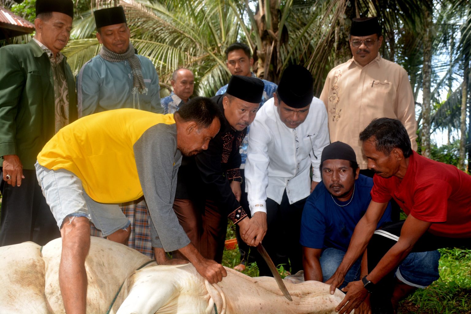 Pada kesempatan tersebut, Martias wanto mengucapkan, terima kasih kepada Bupati Agam telah berkenan hadir di Kampung Baru untuk melaksanakan penyembelihan hewan kurban perdana dalam rangka merayakan Hari Raya Idul Adha.