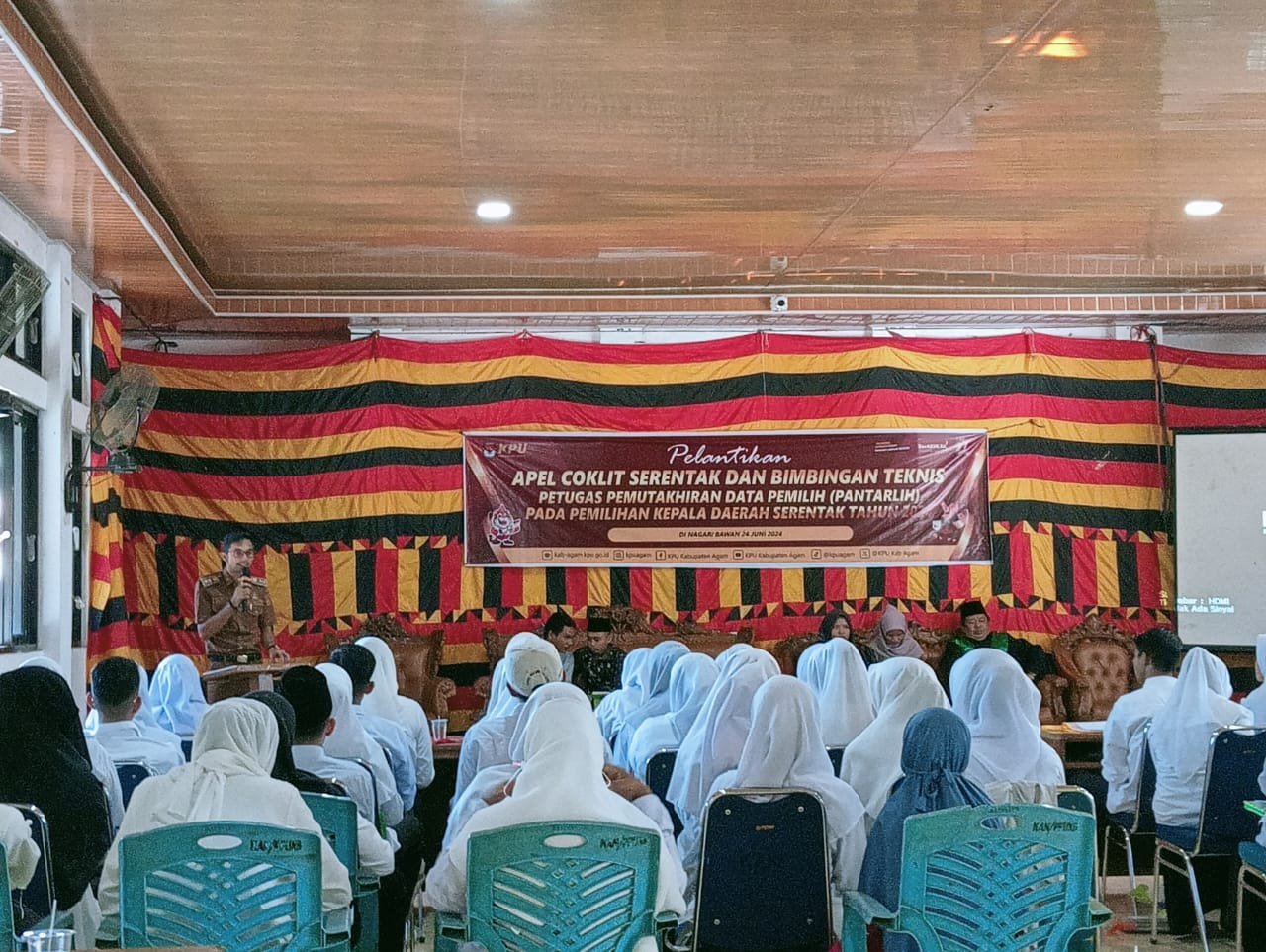 Marawapost.com, Bawan – Walinagari Bawan, Arif eka putra,S.sn menghadiri sekaligus membuka acara Bimtek pemutakhiran data pemilih dan penggunaan aplikasi sistem informasi data pemilih (Sidalih) serta e-Coklit untuk pemilihan Gubernur dan wakil Gubernur, Bupati dan Wakil Bupati serta Walikota dan Wakil Walikota Tahun 2024. Dilaksanakan aula kantor wali nagari bawan, kecematan ampek nagari,Senin 24Juni 2024.