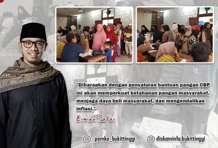 Wali Kota Bukittinggi, Erman Safar, menyampaikan, masyarakat Kota Bukittinggi yang mendapat bantuan pangan (beras) adalah sebanyak 4.876 KK yang tersebar di 24 kelurahan yang ada.