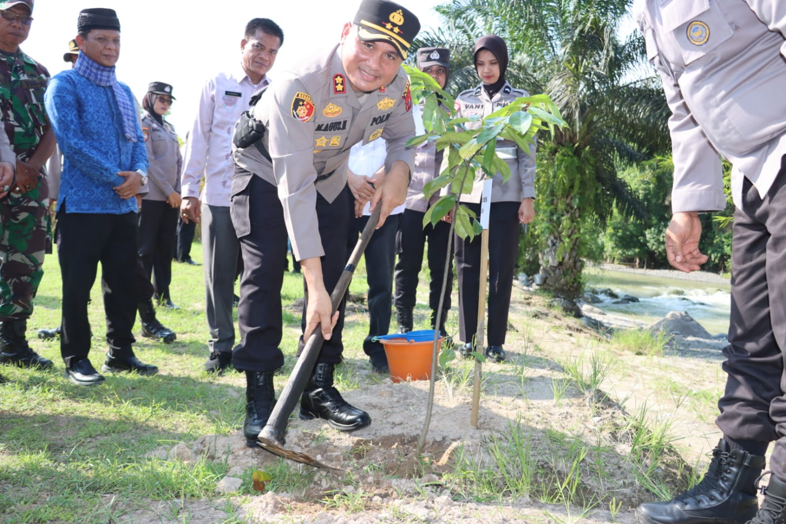 Marawapost.com, Agam – Polres Agam laksanakan kegiatan penanaman pohon dalam rangka peringatan Hut Bhayangkara ke-78. di Lubuk larangan Objek Wisata Garuda Mas, Bantaran sungai Batang Kalulutan Jorong Batu Hampar Nagari Manggopoh Kecamatan Lubuk Basung Kabupaten Agam Sumatera Barat. (27/06/28).