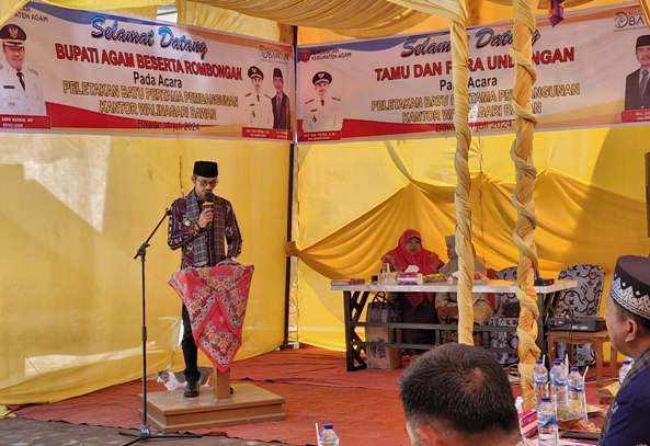 Walinagari Bawan, Arif Eka Putra menucapkan terima kasih atas kedatangan Bupati Agam beserta rombongan dalam rangka mendukung pembangunan kantor Walinagari Bawan ini.