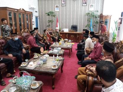 Pasbar, Marawa – Puluhan ninik mamak Kinali dan pengurus Kerapatan Adat Nagari Kinali Kecamatan Kinali Kabupaten pasaman Barat, yang di komandoi Nazar Ikhwan Imbang Langik datangi Bupati Pasaman Barat, untuk menyapaikan keluhan atas kinerja Pj wali Nagari kinali Muslim.SH Dt Rajo Magek, di ruangkerja Bupati, Kamis kemaren (5/8/2021)