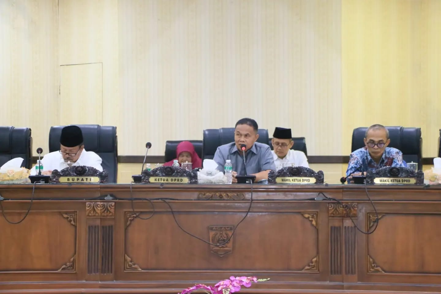 Rapat tersebut dipimpin Wakil Ketua DPRD Agam Marga Indra Putra, didampingi Wakil Ketua Irfan Amran. Hadir pada kesempatan itu Bupati Agam Andri Warman, Forkompimda, Asisten, Anggota DPRD, dan Kepala OPD serta undangan lainnya.