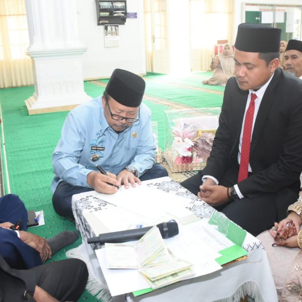 Pada kesempatan tersebut, Bupati Agam Dr.H.Andri Warman MM menjadi saksi nikah dari calon mempelai laki-laki.