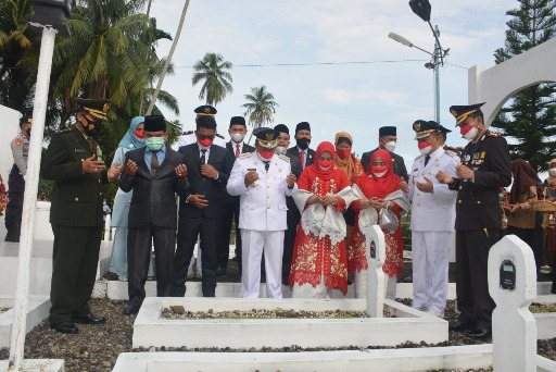 Prosesi ziarah ke TMP Manggopoh sendiri, digelar usai pelaksanaan upacara puncak detik-detik proklamasi 17 Agustus 2021 di halaman kantor bupati Agam.