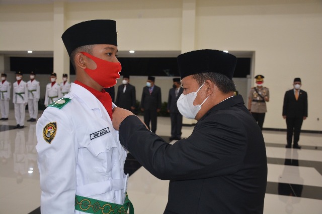 Agam, Marawa – Bupati Agam, Dr H Andri Warman, mengukuhkan 52 anggota Pasukan Pengibar Bendera Pusaka (Paskibraka) Kabupaten Agam, di Balairung Rumah Dinas Bupati Agam, Padang Baru, Lubuk Basung, Senin (16/08/21).