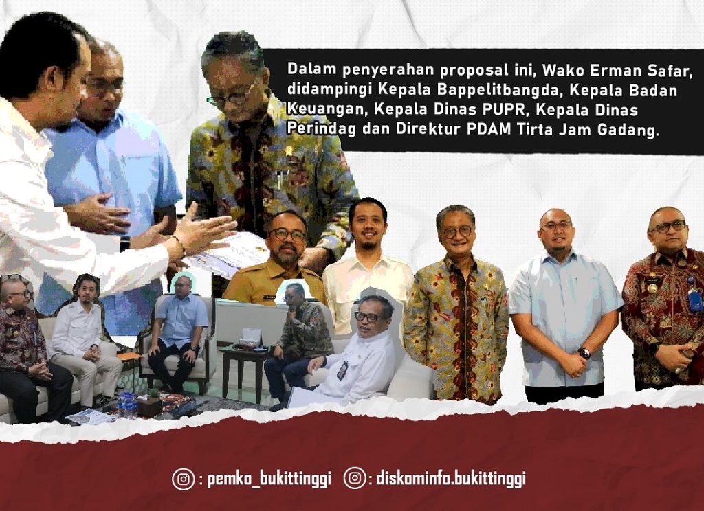 Wali Kota Bukittinggi, Erman Safar, menyampaikan, Pemko Bukittinggi, telah serahkan proposal peningkatan dan optimalisasi sarana dan prasarana air bersih, serta tiga program prioritas lainnya ke Kementerian Pekerjaan Umum. Proposal lain yang diserahkan, revitalisasi kawasan dan sarana tiga pasar (Pasar Atas, Pasar Lereng dan Psar Bawah -red) serta pembangunan infrastruktur pengendalian banjir.