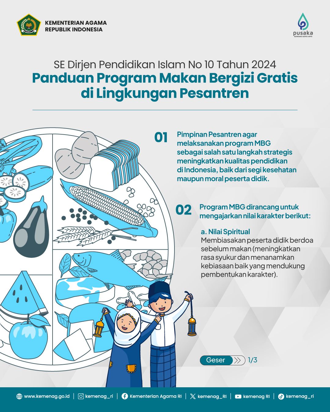 Berikut poin-poin penting dalam SE Dirjen Pendidikan Islam No 10 tahun 2024 tentang Panduan Program Makan Bergizi Gratis di Lingkungan Pesantren: