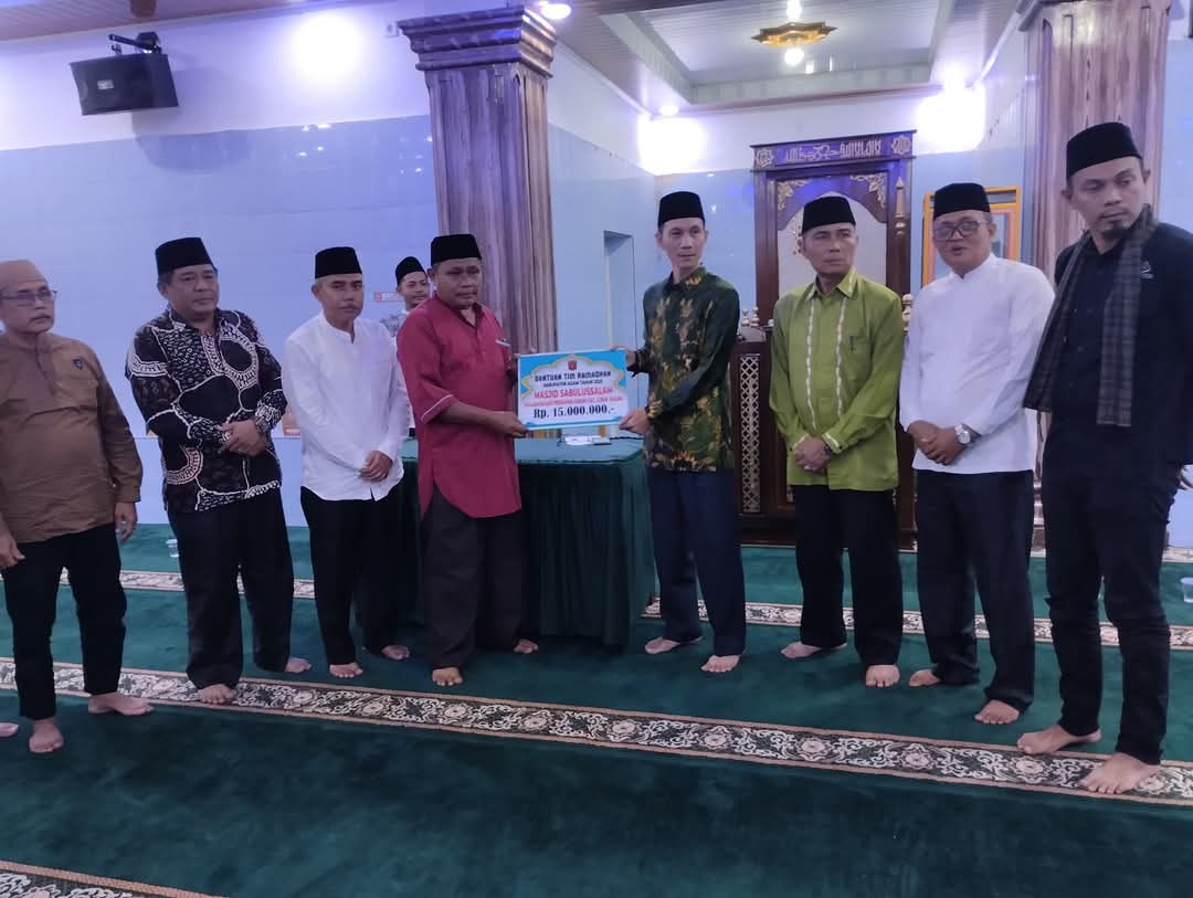 Melalui Tim Ramadhan, Pemerintah Kabupaten Agam memberikan bantuan sebesar 15 Juta Rupiah kepada Masjid Subulussalam Bula’an Jorong 1 Siguhung Nagari Lubuk Basung kabupaten Agam. (RieL)