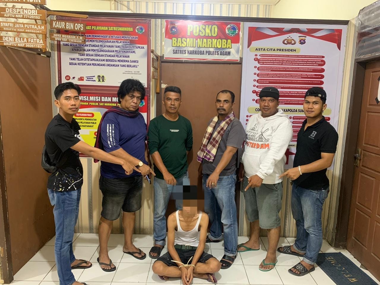 Tersangka berinisial AR (30), warga setempat, ditangkap di depan rumahnya setelah petugas mendapatkan informasi dari masyarakat mengenai aktivitas mencurigakan yang berkaitan dengan penyalahgunaan narkotika. Penangkapan ini dituangkan dalam Laporan Polisi Nomor: LP/A/16/V/2025/SPKT.Satresnarkoba Polres Agam/Polda Sumbar tertanggal 7 Mei 2025.