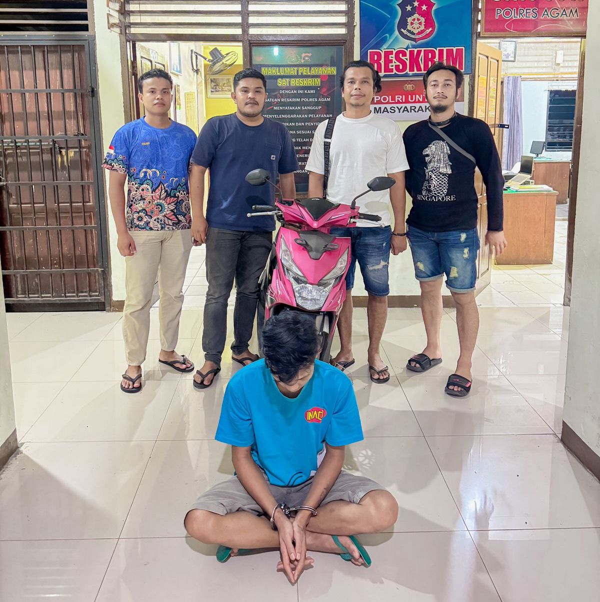 Penangkapan berawal dari laporan warga atas nama Bayu Arianto (30), yang kehilangan sepeda motornya pada 26 April 2025 di area Pasar Impres, Padang Baru, Lubuk Basung.
