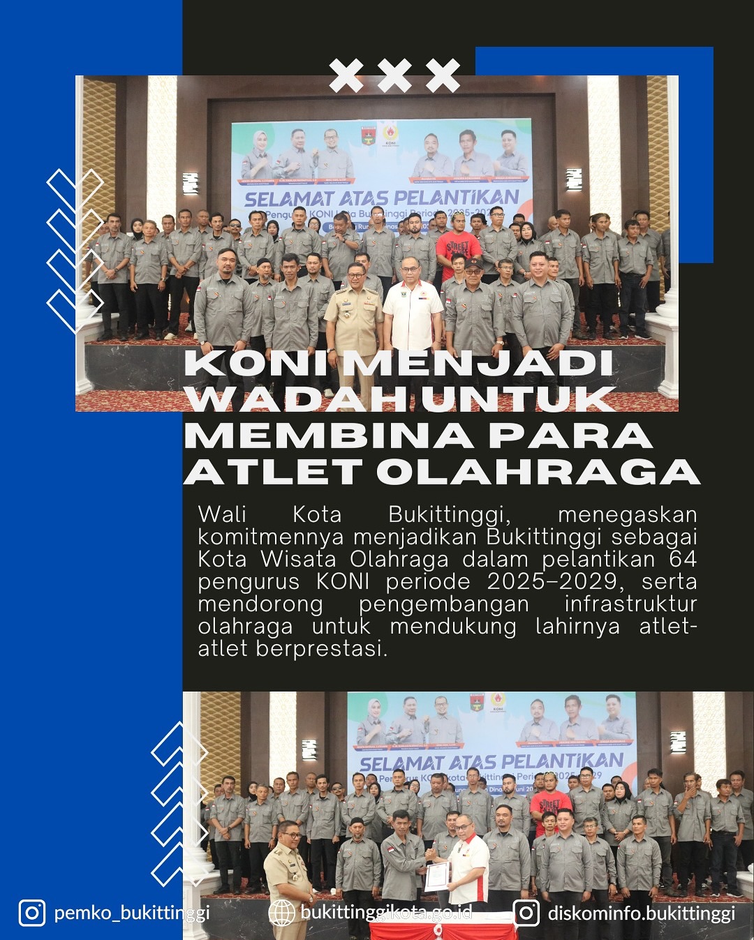 Marawapost.com, Bukittinggi – Pengurus Komite Olahraga Nasional Indonesia (KONI) Kota Bukittinggi periode 2025 – 2029, resmi dikukuhkan dan dilantik oleh Ketua Umum KONI Prov Sumatera Barat, Ir. Ronny Pahlawan. Pelantikan dihadiri langsung oleh Wali Kota Bukittinggi, Ramlan Nurmatias di Balairung Rumah Dinas, Selasa, 3 Juni 2025.