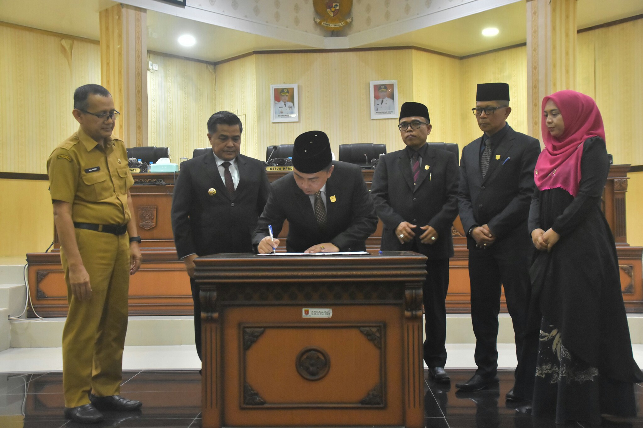 Kesepakatan tersebut diambil dalam Rapat Paripurna dengan agenda pengambilan keputusan terhadap Raperda tentang RPJMD Tahun 2025–2029, yang ditandai dengan penandatanganan oleh Ketua DPRD Agam H. Ilham, Lc, MA, Wakil Ketua Henrizal, Wakil Ketua Muhammad Risman, Wakil Ketua Aderia, SP, MM dan Bupati Agam H. Ir. Benni Warlis, di ruang Rapat Paripurna DPRD Agam, Senin (27/07/25).
