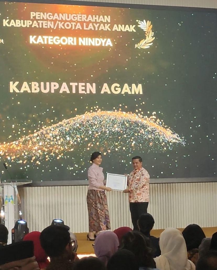 Dengan penghargaan ini, Kabupaten Agam berhasil meraih Peringkat Nindya yang menunjukkan komitmen kuat daerah dalam mewujudkan pembangunan yang responsif terhadap kebutuhan anak. (*)