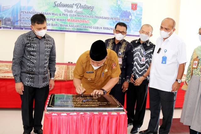 Sementara itu, Bupati Agam, Dr. H. Andri Warman, mengucapkan terimakasih kepada Bank Nagari yang sudah membantu Pemkab Agam dalam mewujudkan transaksi berbasis digital.