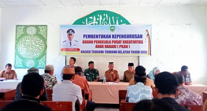 Marawapost.com, Pasaman – Babinsa Koramil 05/Rao Kodim 0305/Pasaman, Sertu Habibi, menghadiri kegiatan pembentukan kepengurusan Badan Pengelola Pusat Kreativitas Anak Nagari (PKAN) dan Pos Bantuan Hukum di Nagari Taruang-Taruang Selatan, Kecamatan Rao, Kabupaten Pasaman, pada Selasa (30/9/2025).