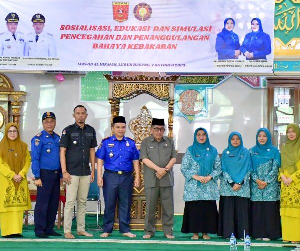 Marawapost.com, Agam – Bupati Agam diwakili Asisten Pemerintahan dan Kesejahteraan Rakyat, Rahman, S.IP, menghadiri kegiatan Sosialisasi, Edukasi, dan Simulasi Pencegahan serta Penanggulangan Bahaya Kebakaran, di Masjid Al Hikmah, Lubuk Basung, Selasa (07/10/25).