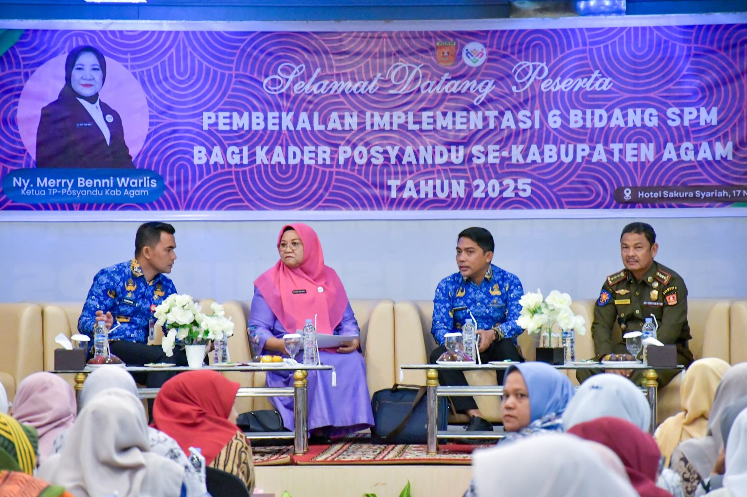 Marawapost.com, Agam – Upaya memperkuat pelayanan dasar di tingkat nagari kembali ditegaskan Pemerintah Kabupaten Agam melalui kegiatan pembekalan implementasi Standar Pelayanan Minimal (SPM) bagi Kader Posyandu se-Kabupaten Agam yang digelar di Ballroom Hotel Sakura Syariah, Kecamatan Lubuk Basung, Senin (17/11/25).