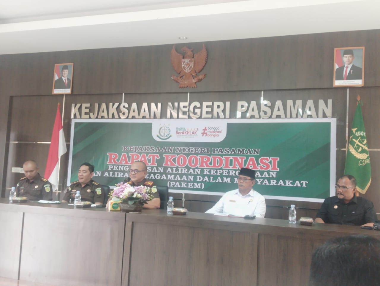 Marawapost.com, Pasaman — Kejaksaan Negeri Pasaman menggelar Rapat Koordinasi (Rakor) Pengawasan Aliran Kepercayaan dan Aliran Keagamaan dalam Masyarakat (PAKEM), bertempat di Aula Kejaksaan Negeri Pasaman, Rabu (19/11).