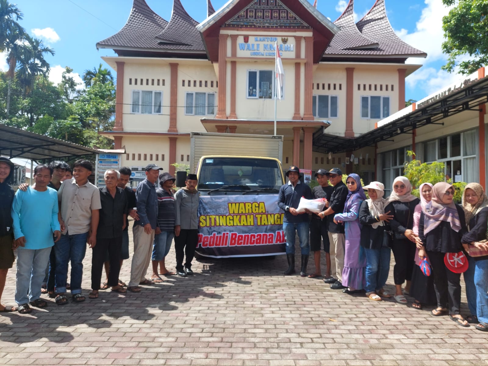 Diketahui, warga Sitingkah Tangah Jorong II Balai Ahad mengantarkan bantuan kepada korban bencana dengan Truck Box Cold Diesel dan diringi mobil L300 dan Minibus.