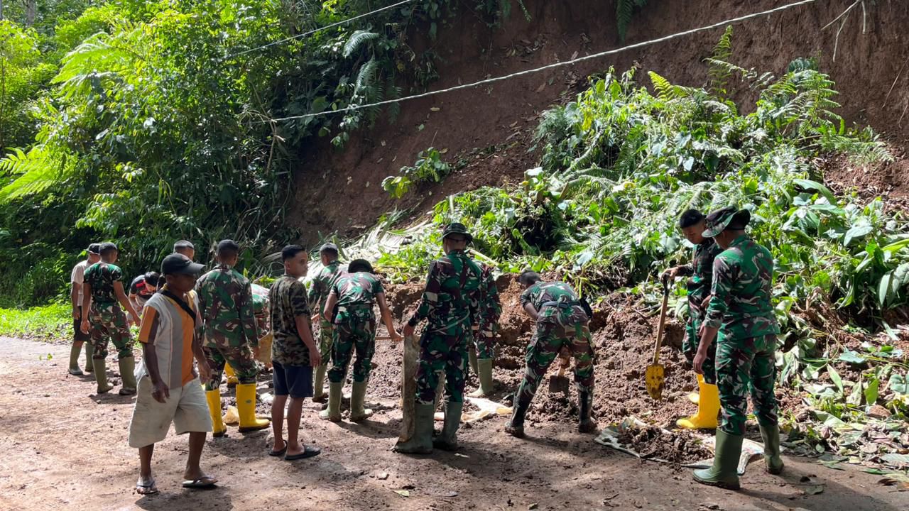 Kegiatan tersebut turut melibatkan personel Koramil 03/Talu bersama masyarakat setempat. Dengan sigap, prajurit TNI membersihkan tumpukan tanah, batu, dan kayu yang menimbun akses jalan akibat longsor yang terjadi dalam beberapa hari terakhir.