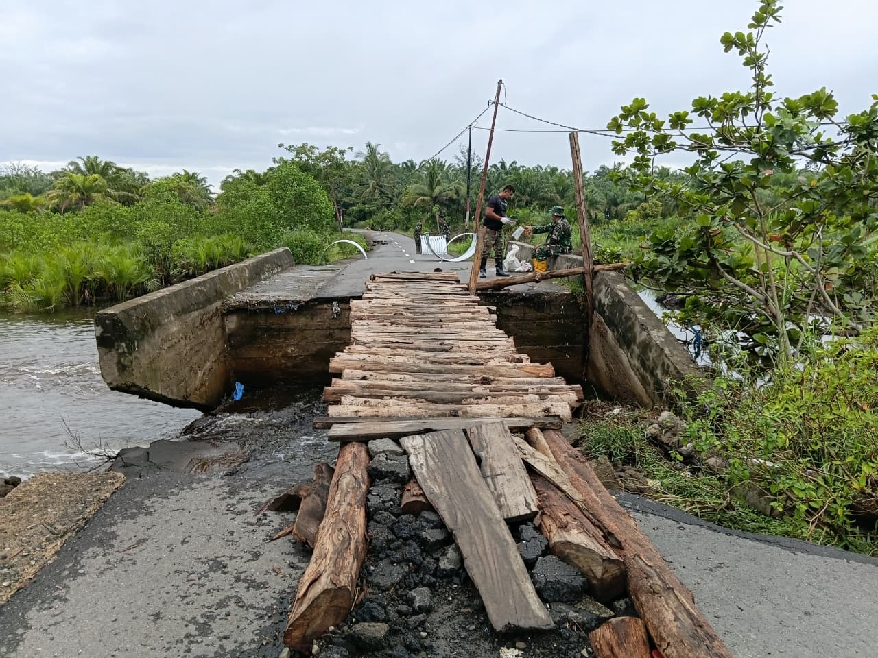 Marawapost.com, Pasaman Barat — Wujud nyata kepedulian TNI terhadap pembangunan dan kesejahteraan masyarakat kembali ditunjukkan melalui pembuatan Jembatan Aramco di wilayah Koramil 02/Simpang Empat, Kodim 0305/Pasaman. Kegiatan ini dilaksanakan di Jorongan Karambia Ampek, Nagari Sasak, Kecamatan Sasak Ranah Pasisie, Kabupaten Pasaman Barat.