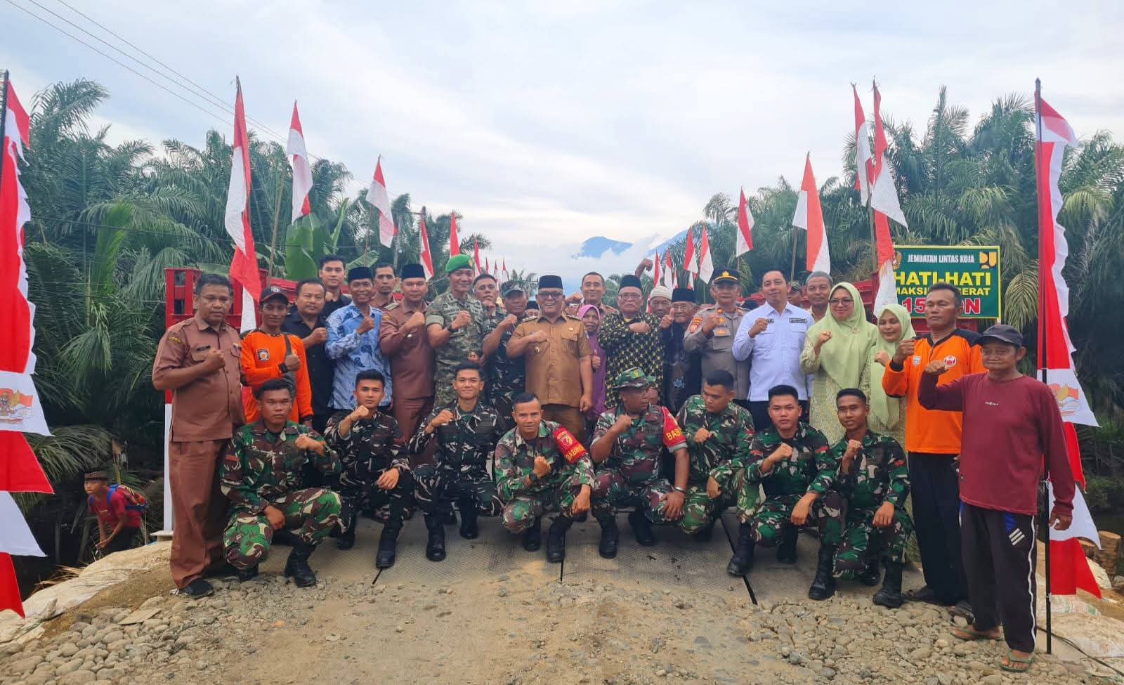 Marawapost.com, PASAMAN BARAT — Kodim 0305/Pasaman mendampingi kunjungan Muspida Kabupaten Pasaman Barat dalam rangka penyerahan tanda selesainya pembangunan Jembatan Bailey sebagai sarana penghubung Dusun 1 menuju Dusun 5, Kejorongan Koto Gadang Jaya, Nagari Koja, Kecamatan Kinali, Kabupaten Pasaman Barat, Senin (19/01/2026) pukul 17.00 WIB.