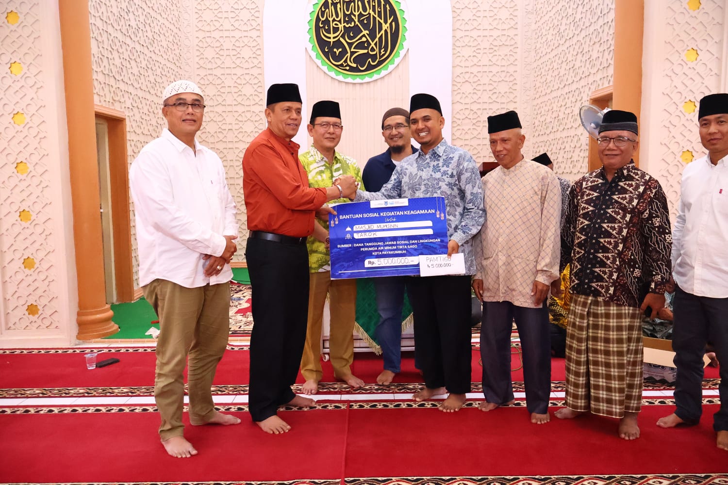 Pada kesempatan itu, Wali Kota menyerahkan bantuan Rp5 juta dari Bank Nagari dan Rp5 juta dari Perumda Tirta Sago untuk mendukung pembangunan masjid.