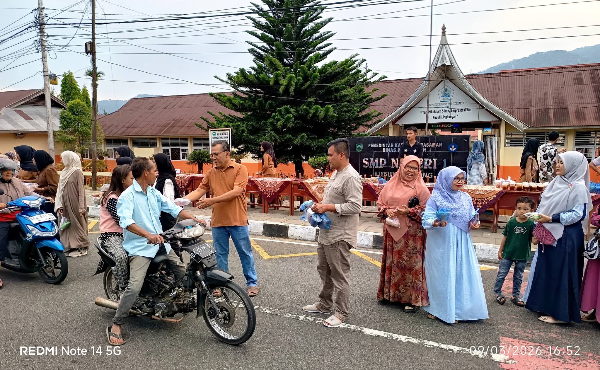 Marawapost.com, Pasaman — Semangat berbagi di bulan suci Ramadan kembali ditunjukkan keluarga besar SMP Negeri 1 Lubuk Sikaping. Untuk tahun ketiga berturut-turut, kegiatan berbagi takjil yang diprakarsai OSIS sekolah tersebut kembali digelar dengan melibatkan guru, siswa, serta wali murid, Senin (9/3/2026).